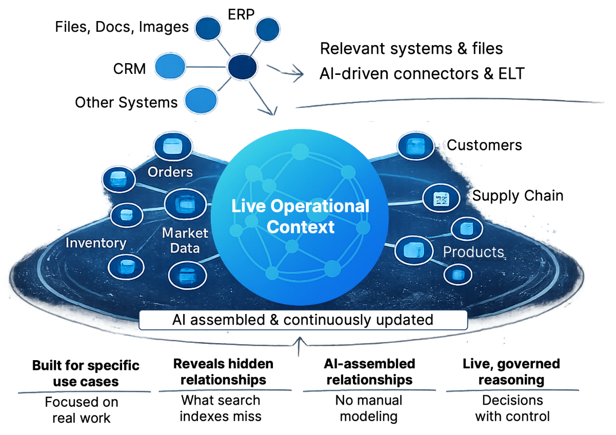 A live, workflow-specific context layer that connects data, decisions, and execution, without rebuilding your stack.