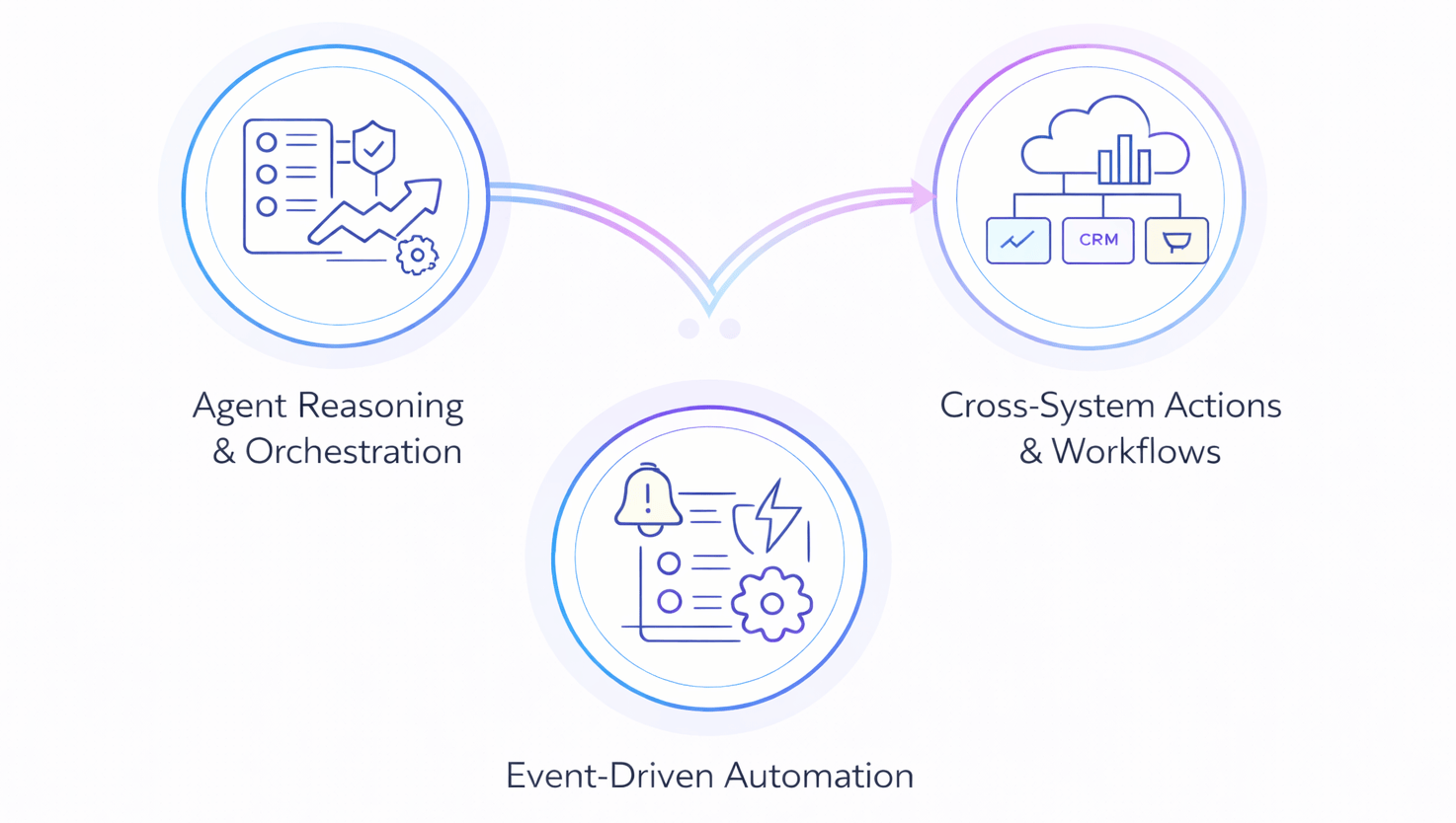 Execute actions across ERP, CRM, commerce, and operational platforms.