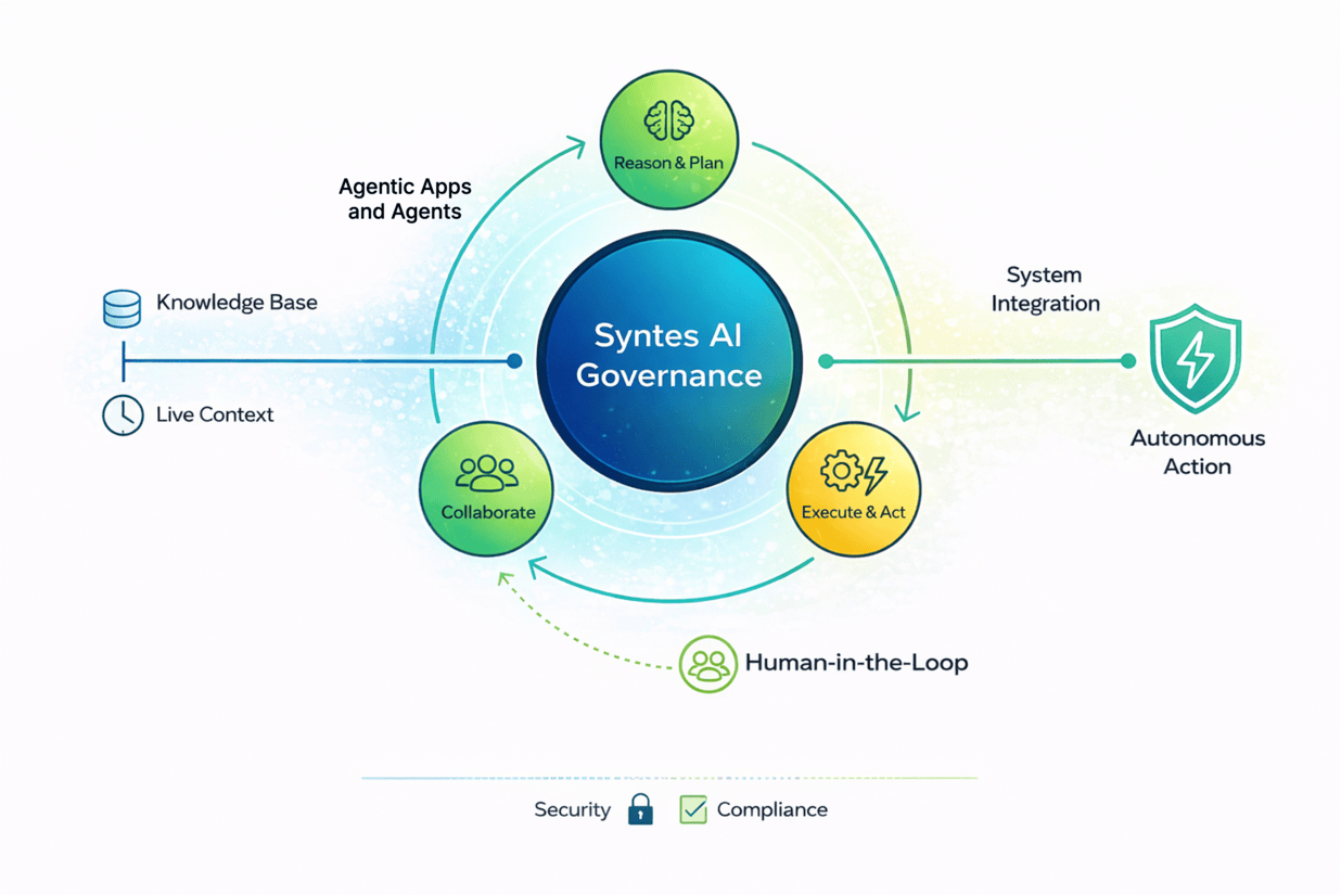 Syntes AI enables trusted AI agents and agentic applications that go beyond recommendations—reasoning, coordinating, and executing work safely across systems with human oversight.