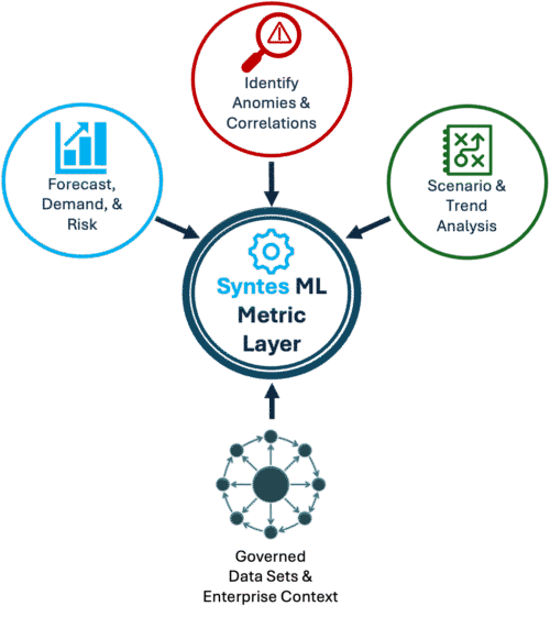Syntes AI transforms raw enterprise data into source-grounded analytics, predictive intelligence, and verified metrics, so teams and AI can act with confidence.