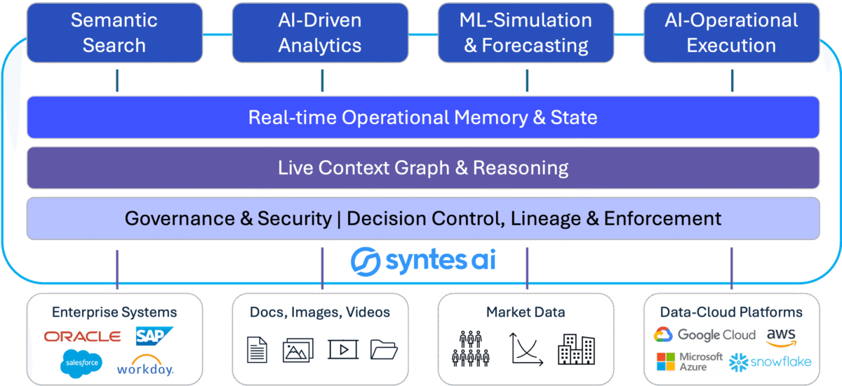 Built for security, scale, and continuous change. Syntes adapts as data, systems, and policies evolve—so enterprises deploy AI with confidence, not constant reengineering.